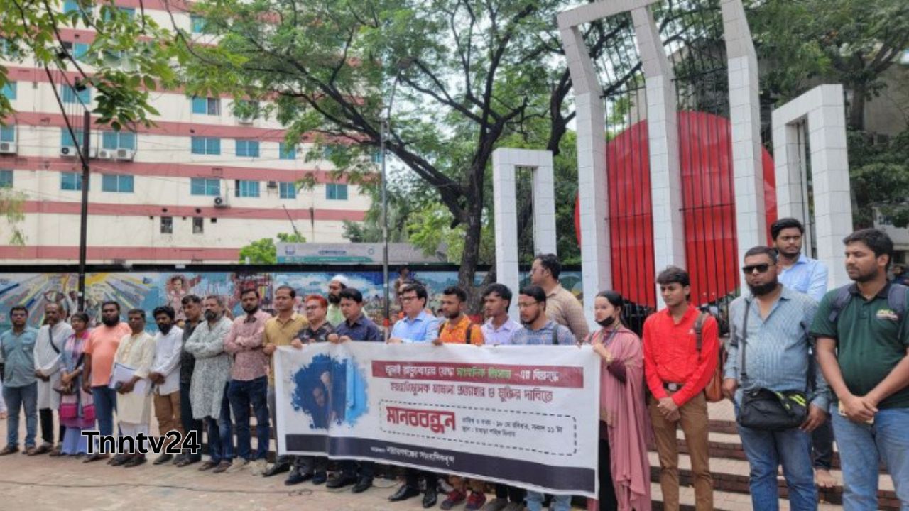 তরুণ সাংবাদিক জিসানের মুক্তির দাবিতে নারায়ণগঞ্জে মানব বন্ধন।Nafiz Ashraf.Tnntv24