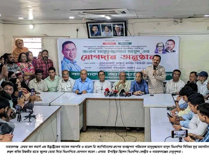 যোগদান অনুষ্ঠানে বিএনপির যুগ্ম মহাসচিব রুহুল কবির রিজভী বলেন, মাসুদুজ্জামান মাসুদ নারায়ণগঞ্জের একজন বিশিষ্ট ব্যক্তি, সামাজ সেবক ও ক্রীড়া