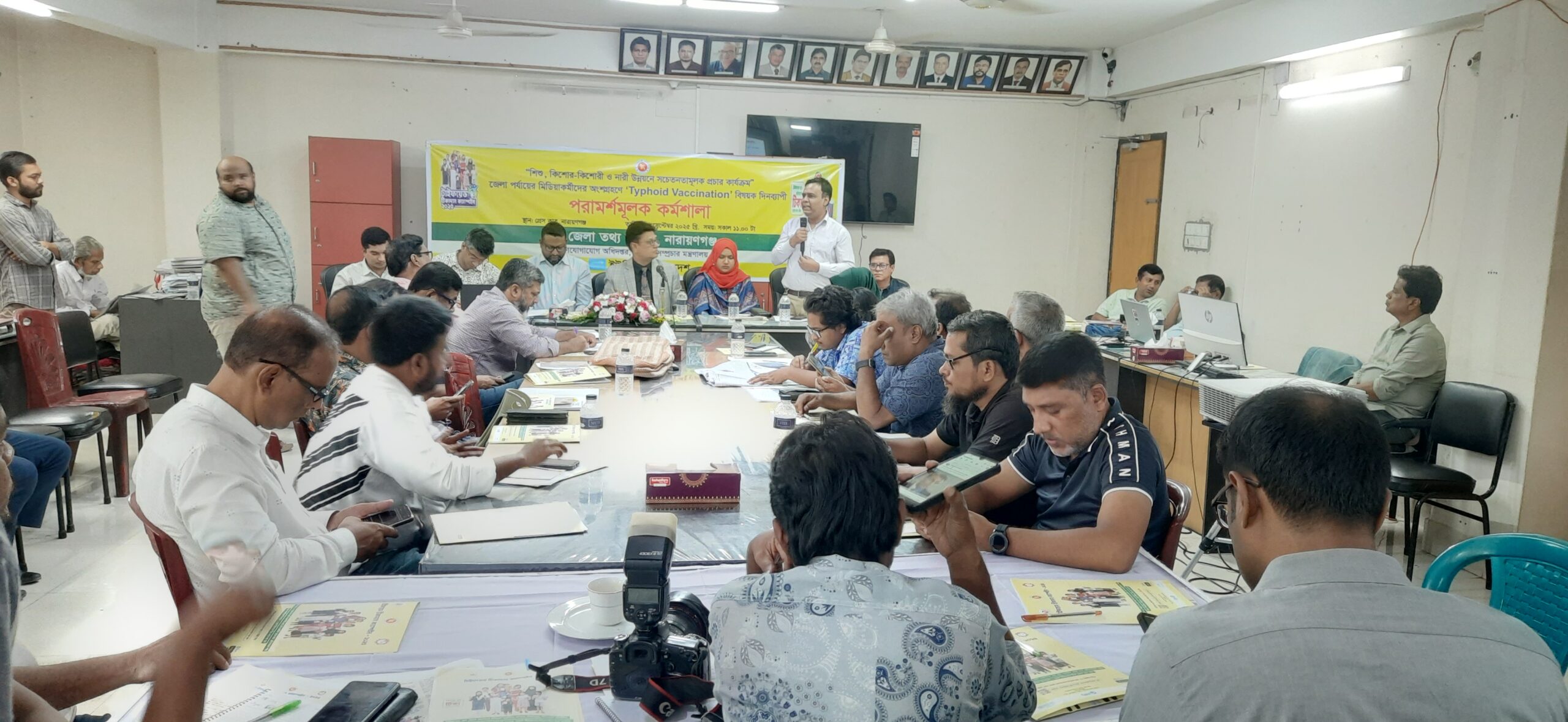 নারায়ণগঞ্জে শিশু, কিশোর -কিশোরী ও নারী উন্নয়নে সচেতনতামুলক প্রচার কার্যক্রম মিডিয়া কর্মীদের অংশ গ্রহণে টাইফয়েড ভেক্সিনেশন বিষয়ক দিন ব্যাপি পরার্শমুলক কর্মশালা অনুষ্ঠিত হয়েছে।