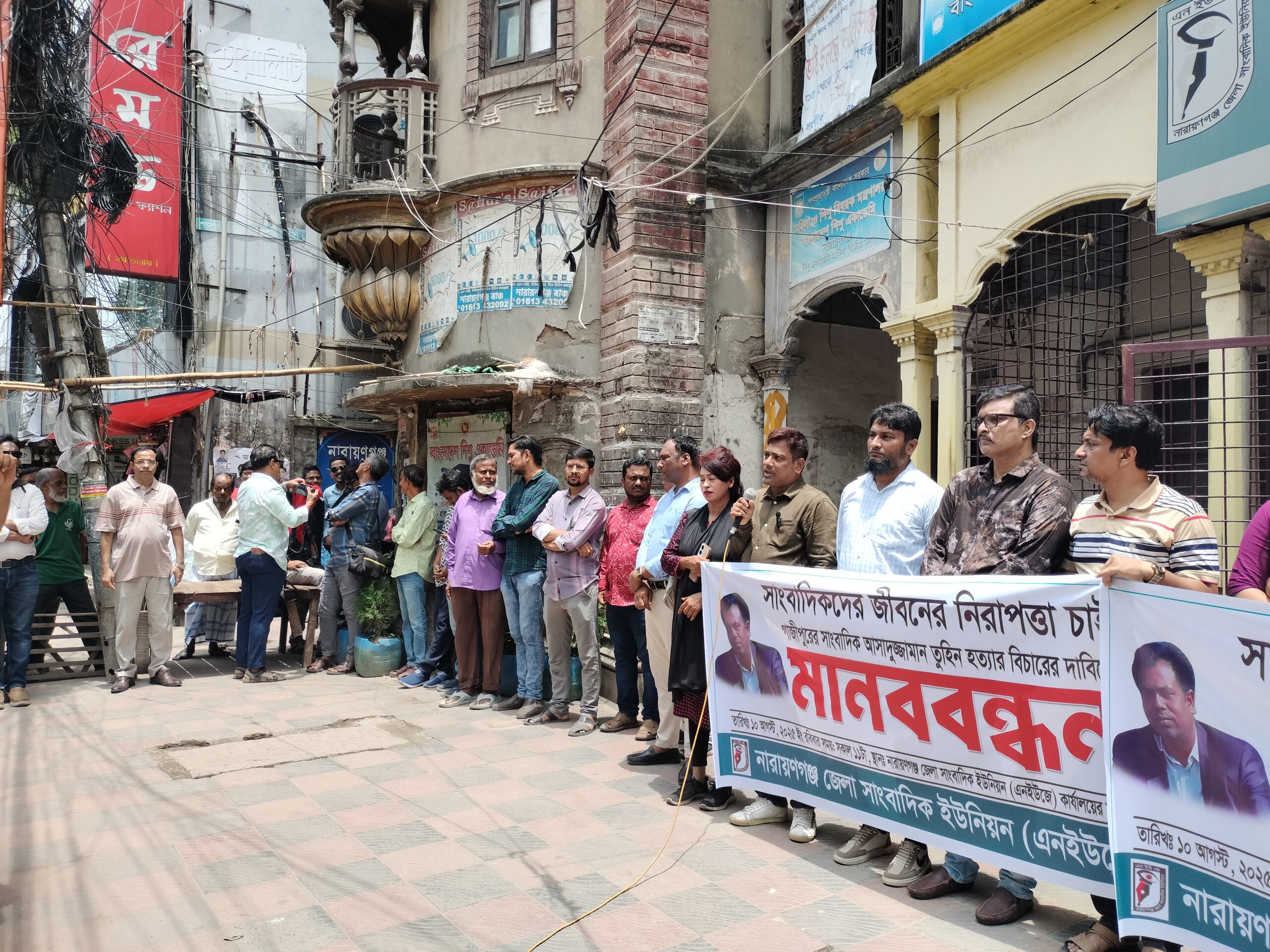সাংবাদিক তুহিন হত্যার প্রতিবাদে নারায়ণগঞ্জে মানববন্ধন