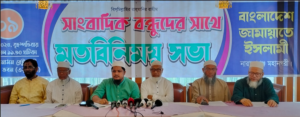পি আর পদ্ধতিতে আগামী জাতীয় সংসদ নির্বাচনসহ পাঁচ দফা জানিয়ে সাংবাদিকদের সাথে মতবিনিময় করেছে বাংলাদেশ জামায়াতে ইসলামী নারায়ণগঞ্জ মহানগর।