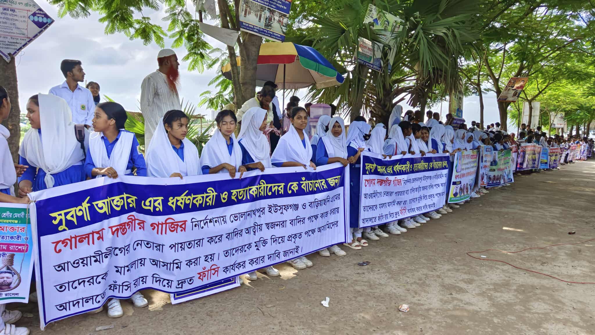 দ্রুত বিচার ও দোষীদের দৃষ্টান্তমূলক শাস্তির দাবিতে গতকাল বৃহস্পতিবার (৩ জুলাই) বিকেলে পূর্বাচল উপশহরের ১ নম্বর সেক্টরে ইউসুফগঞ্জ স্কুলের সামনে মানববন্ধন করেন বিদ্যালয়ের শিক্ষার্থী,অভিভাবক, শিক্ষক ও এলাকাবাসী।