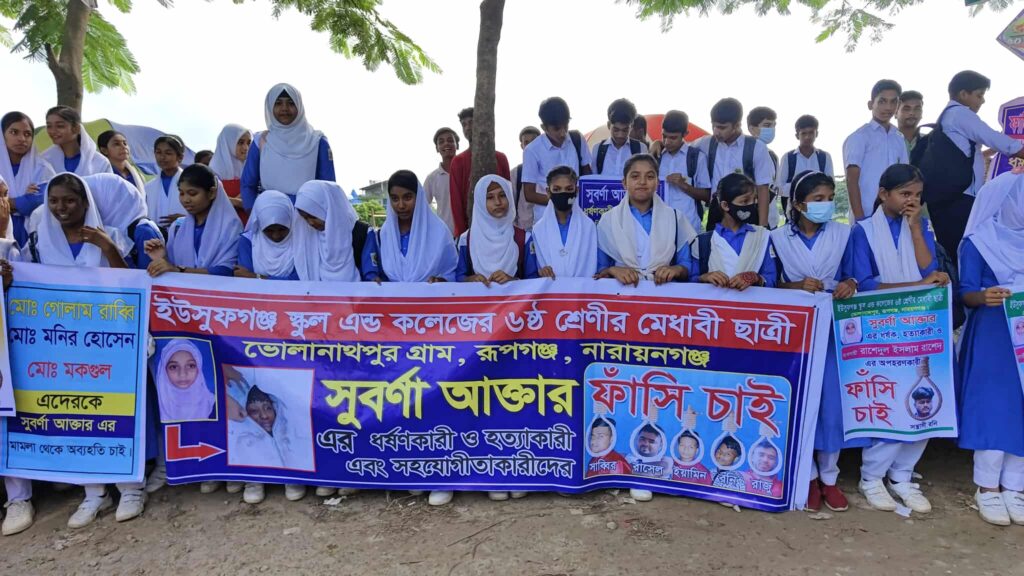 সাত বছরেও সুবর্ণা হত্যার বিচার হয়নি আসামিদের গ্রেপ্তারে শিক্ষার্থীদের মানববন্ধন Tnntv24.স্টাফ রিপোর্টার রূপগঞ্জঃ নারায়ণগঞ্জের রূপগঞ্জে ইউসুফগঞ্জ স্কুলের ছাত্রী সুবর্ণা ধর্ষণ ও হত্যাকাণ্ডের সাত বছর পেরিয়ে গেলেও এখনো বিচার সম্পন্ন হয়নি। দ্রুত বিচার ও দোষীদের দৃষ্টান্তমূলক শাস্তির দাবিতে গতকাল বৃহস্পতিবার (৩ জুলাই) বিকেলে পূর্বাচল উপশহরের ১ নম্বর সেক্টরে ইউসুফগঞ্জ স্কুলের সামনে মানববন্ধন করেন বিদ্যালয়ের শিক্ষার্থী,অভিভাবক, শিক্ষক […]