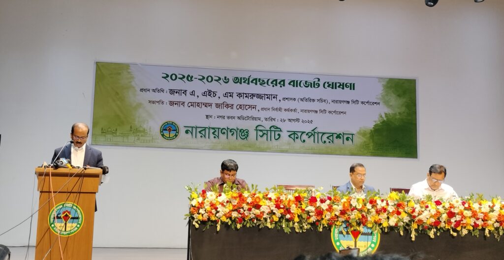 নারায়ণগঞ্জ সিটি করপোরেশনের রাজস্ব ও উন্নয়নসহ ৭৭৫ কোটি টাকার বাজেট ঘোষণা করেছেন Tnntv24.টাইমস রিপোর্ট,নারায়ণগঞ্জ: নারায়ণগঞ্জ সিটি করপোরেশনের ২০২৫-২০২৬ অর্থবছরের রাজস্ব ও উন্নয়নসহ ৭৭৫ কোটি টাকার বাজেট ঘোষণা করেছেন নারায়ণগঞ্জ সিটি করপোরেশনের প্রশাসক এএইচএম কামরুজ্জামান। বৃহস্পতিবার বেলা সোয়া ১১ টায় নগর ভবন অডিটোরিয়ামে এ বাজেট ঘোষণার আয়োজন করা হয়। ২০২৫-২০২৬ অর্থবছরের জন্য ৭৭৫ কোটি ৩৩ লাখ […]