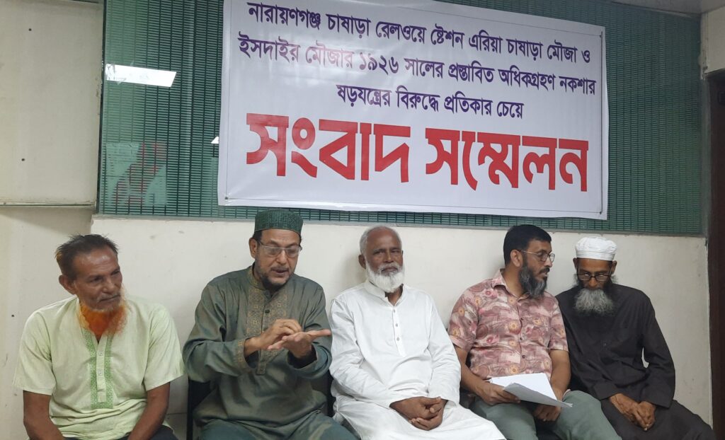 রেলওয়ের উচ্ছেদ হুমকির প্রতিবাদে নারায়ণগঞ্জে মানববন্ধন ও সংবাদ সম্মেলন Tnntv24.নিজস্ব প্রতিবেদক: নারায়ণগঞ্জ সদর উপজেলার চাষাঢ়ায় কয়েক শত ব্যাক্তিমালিকানাধীন প্রায় পাঁচ একর জমি রেলওয়ের দাবি করে রেলকর্তৃক উচ্ছেদের পায়তারা করছে অভিযোগ উঠেছে। আর এর প্রতিবাদে মানববন্ধন ও সংবাদ সম্মেলন করেছে বিক্ষুব্দ এলাকাবাসী। মঙ্গলবার দুপুরে চাষাড়ার রেলস্টেশন সংলগ্ন এলাকায় চাষাঢ়া ইসদাইর সংযোগ সড়কে মানববন্ধন এবং বিকেলে নারায়ণগঞ্জ […]