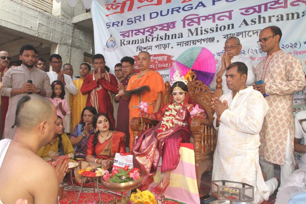 নারায়ণগঞ্জে রামকৃষ্ণ মিশন আশ্রমে আনন্দমুখর পরিবেশে কুমারী পূজা অনুষ্ঠিত ।Nafiz Ashraf.Tnntv24