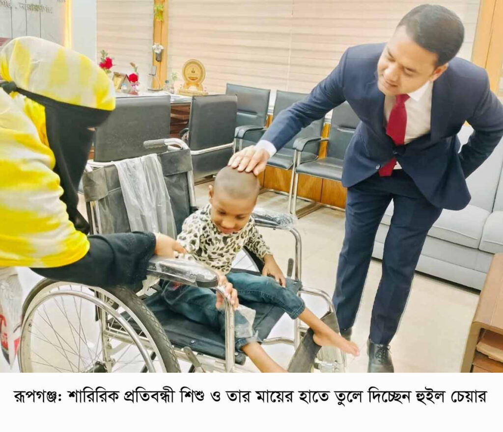 বিশ্ব প্রতিবন্ধী দিবসে রূপগঞ্জে শারিরিক প্রতিবন্ধী শিশুকে হুইল চেয়ার উপহার:Nafiz Ashraf.Tnntv24